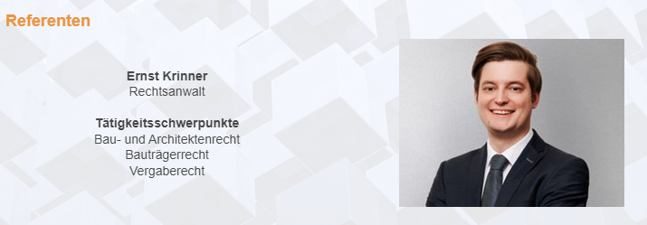 Unser Verbandsanwalt RA Ernst Krinner kennt die rechtlichen Probleme für Ingenieure und Architekten aus der täglichen Praxis.